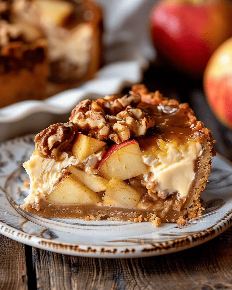Experience the delightful combination of apple pie and cheesecake in this delicious recipe.