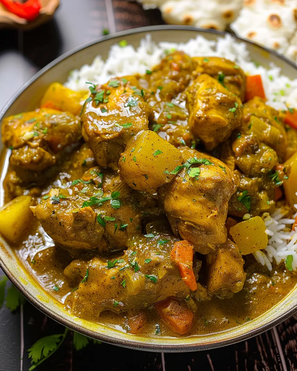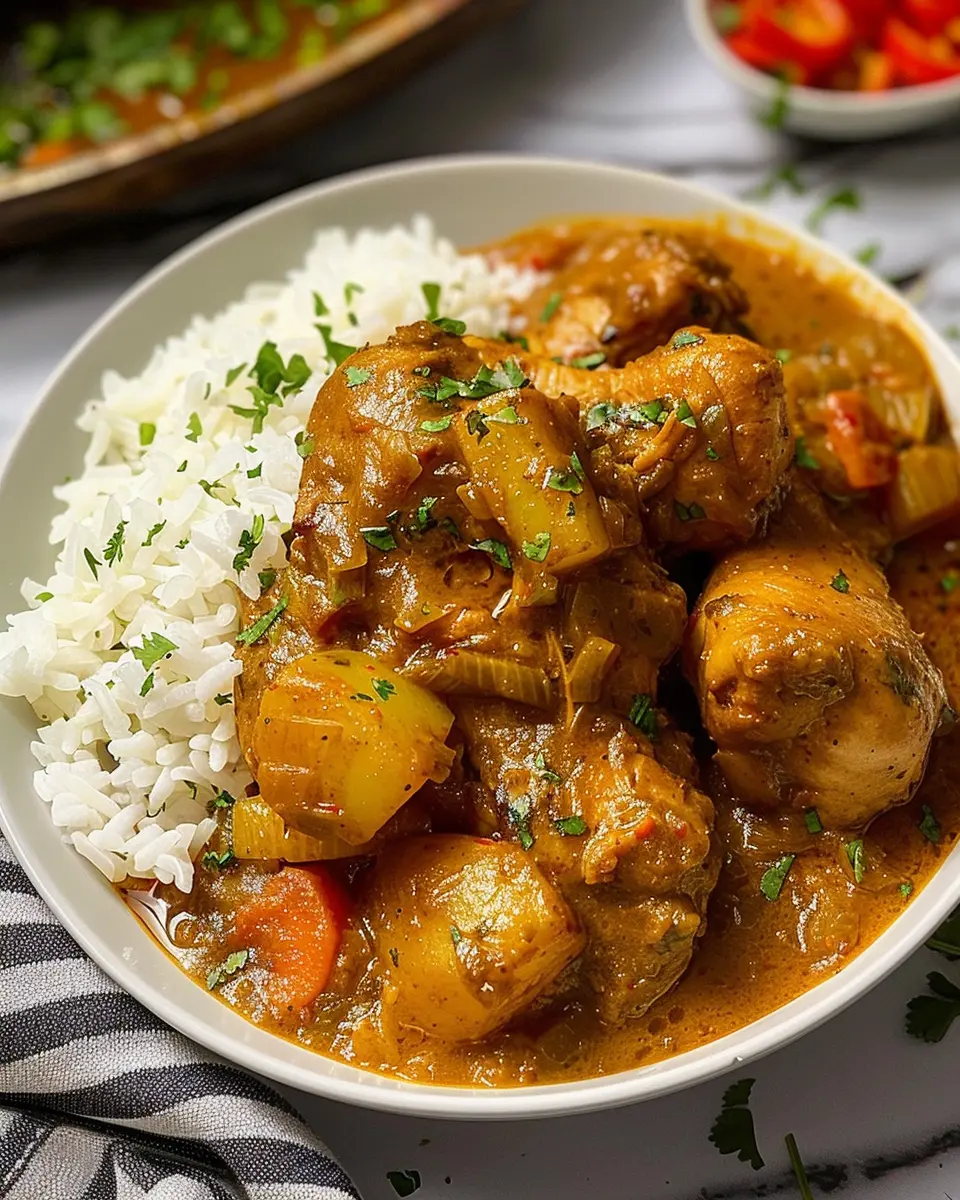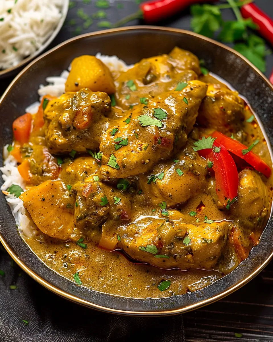 Authentic Jamaican Curry Chicken is more than just a meal—it’s an experience that brings together rich flavors and vibrant cultures. This dish originates from the beautiful island of Jamaica, where spices are a way of life. Often made with tender chicken pieces marinated in a blend of curry powder, garlic, and other aromatic spices, it embodies the island’s flair for bold and exciting tastes. The combination of traditional Caribbean spices with the savory depth of chicken creates a warming dish that’s perfect for any occasion.