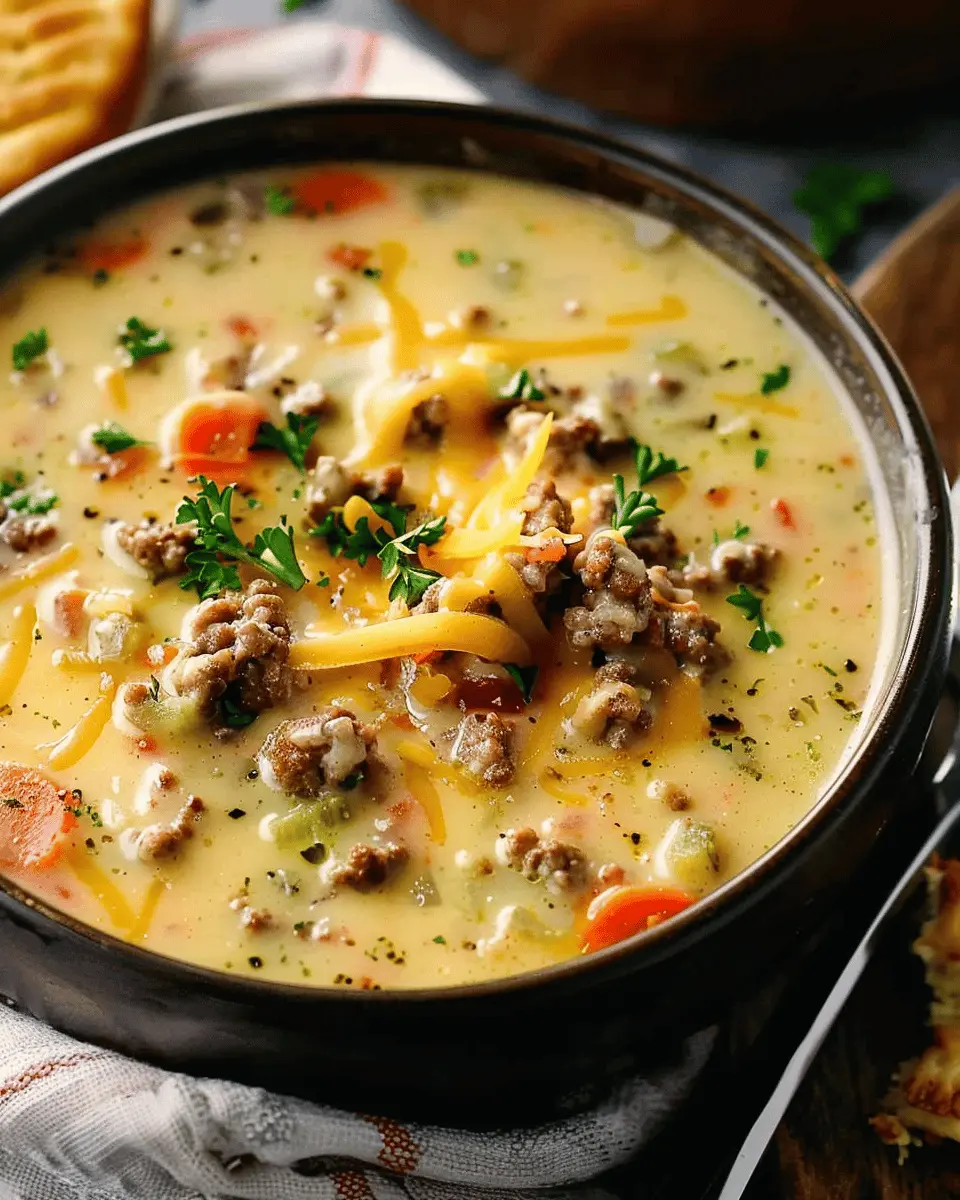 A rich and creamy cheeseburger soup that combines all your favorite cheeseburger flavors into a single satisfying bowl of comfort.