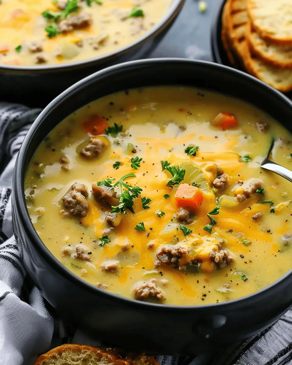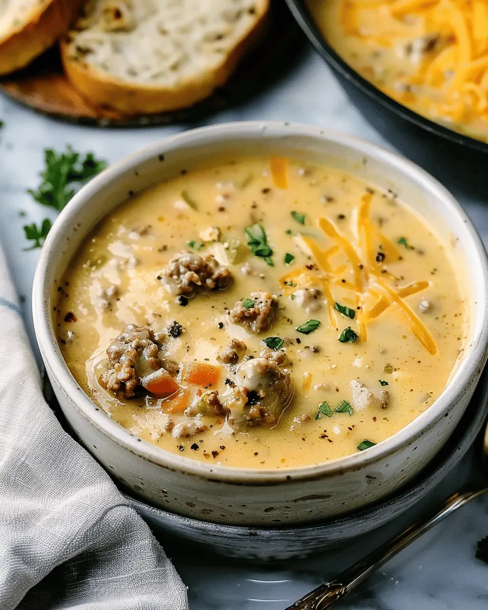 In summary, this Award Winning Cheeseburger Soup is more than just a meal; it’s an experience! With its creamy texture and rich flavors, it’s perfect for cozy nights or casual gatherings with friends.