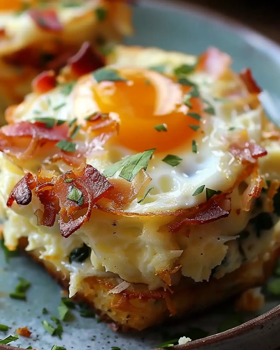 PrintBaked Eggs Napoleon: Easy & Indulgent Turkey Bacon Delight