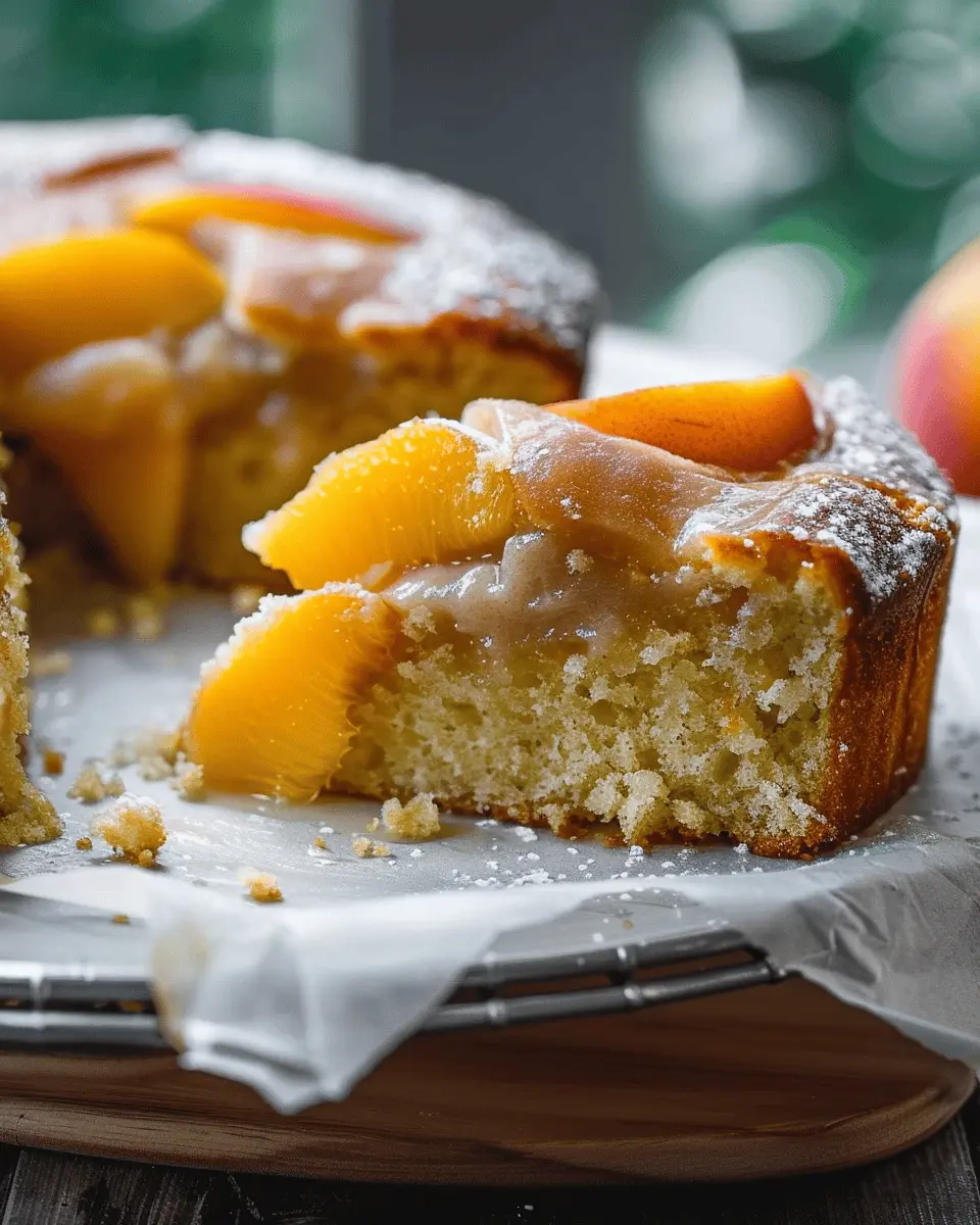 A delicious and moist brown sugar peach cake perfect for summer gatherings.