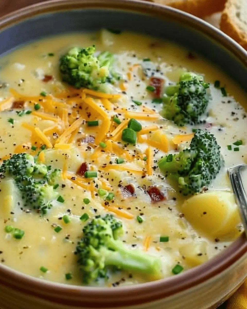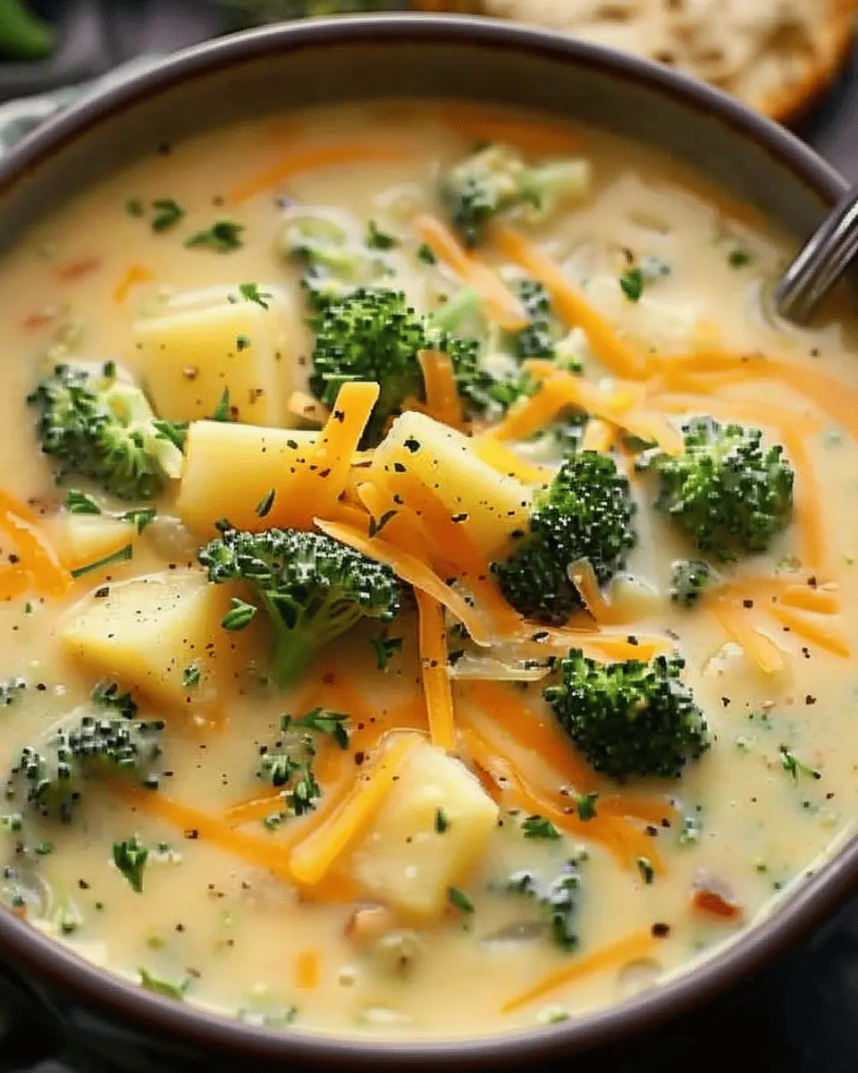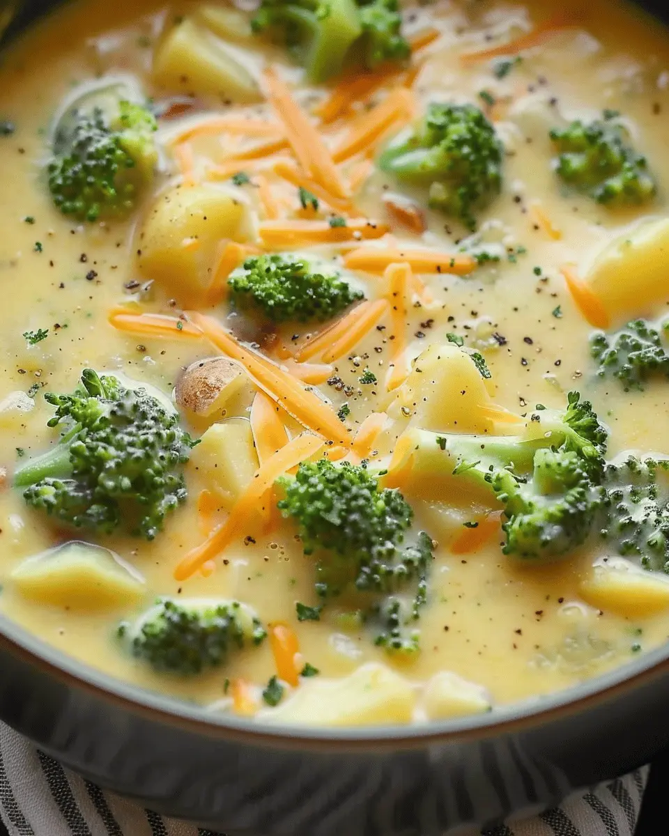 A warm and hearty soup perfect for chilly nights featuring creamy potatoes, fresh broccoli, and sharp cheddar.
