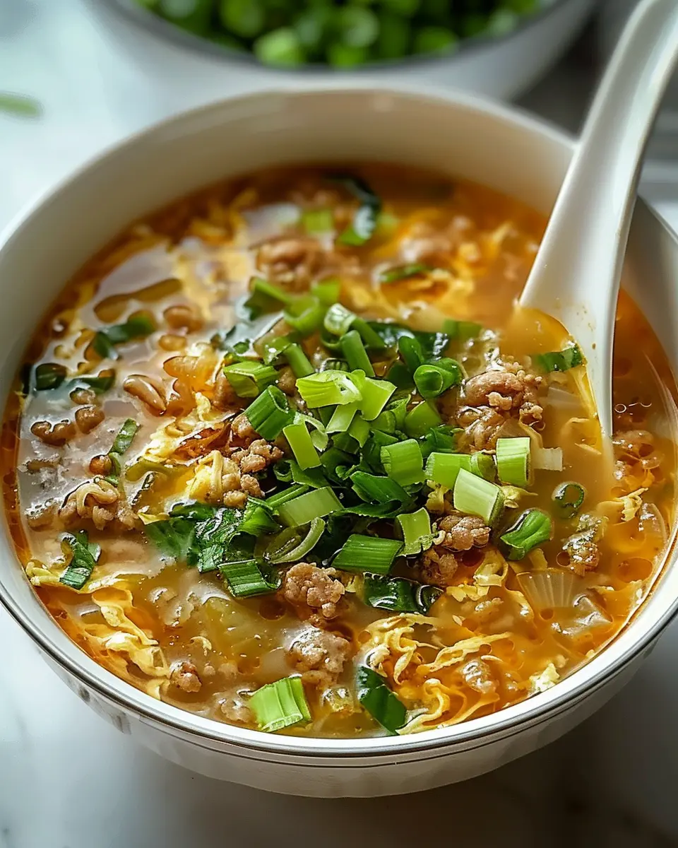 A comforting and flavorful one-pot soup that brings the essence of egg rolls into a warm bowl. Perfect for cold days.