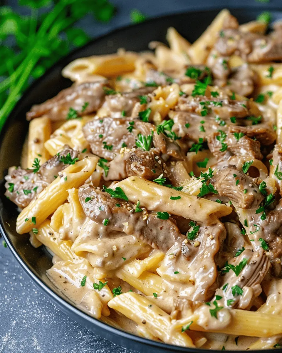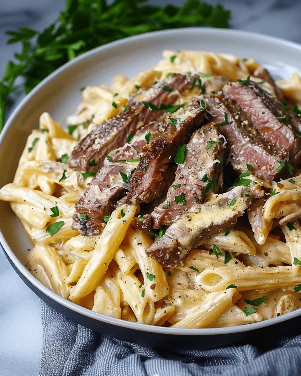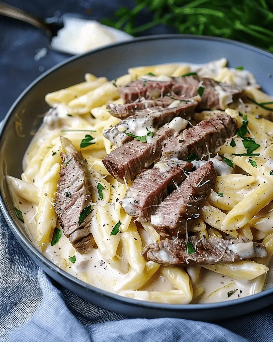 I remember hosting a dinner party where I served this dish with garlic bread and a crisp side salad. The combination was a hit, leaving everyone asking for the recipe! Elevate your creamy steak pasta tonight and savor the experience.