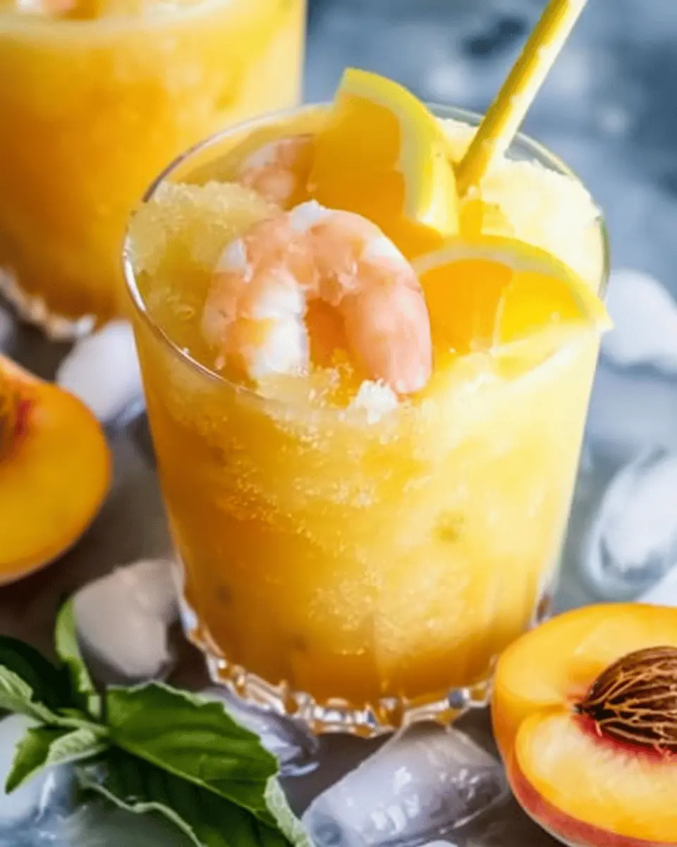 This Delightfully Cool Peach Lemonade Slush is the perfect refreshing drink for hot summer days, combining the sweetness of peaches with the tartness of lemonade.