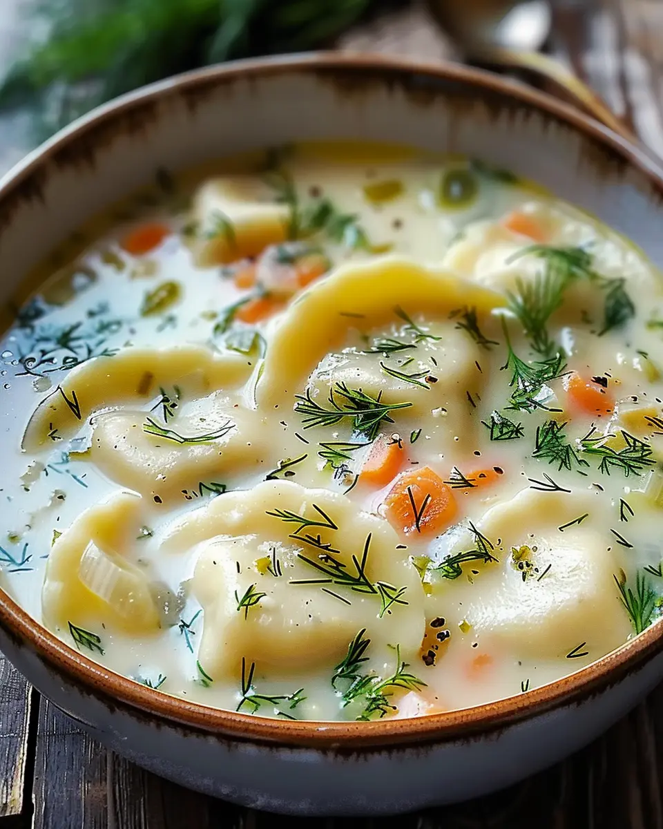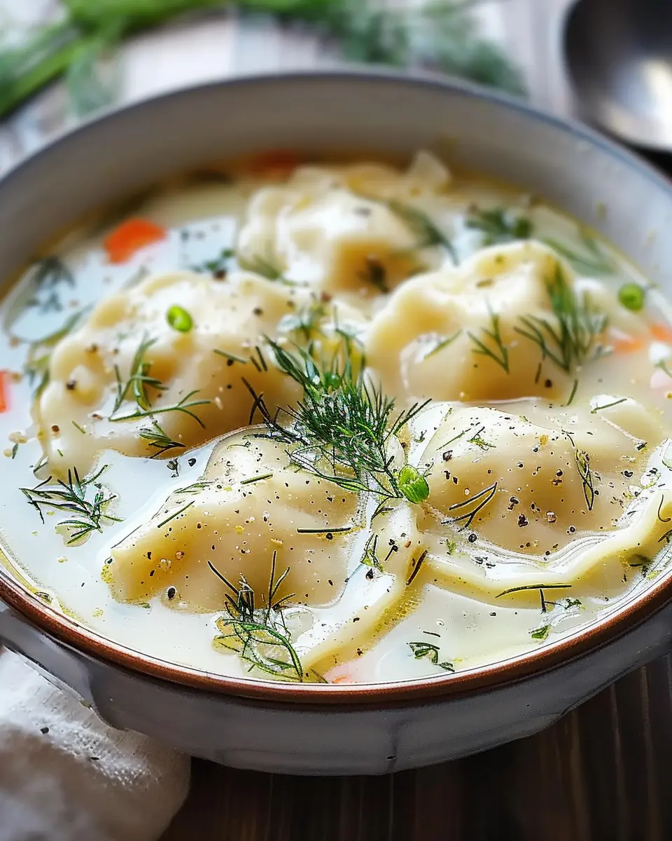 Keywords: Dill Pierogi Soup, Comforting Recipe, Easy Soup Recipe
