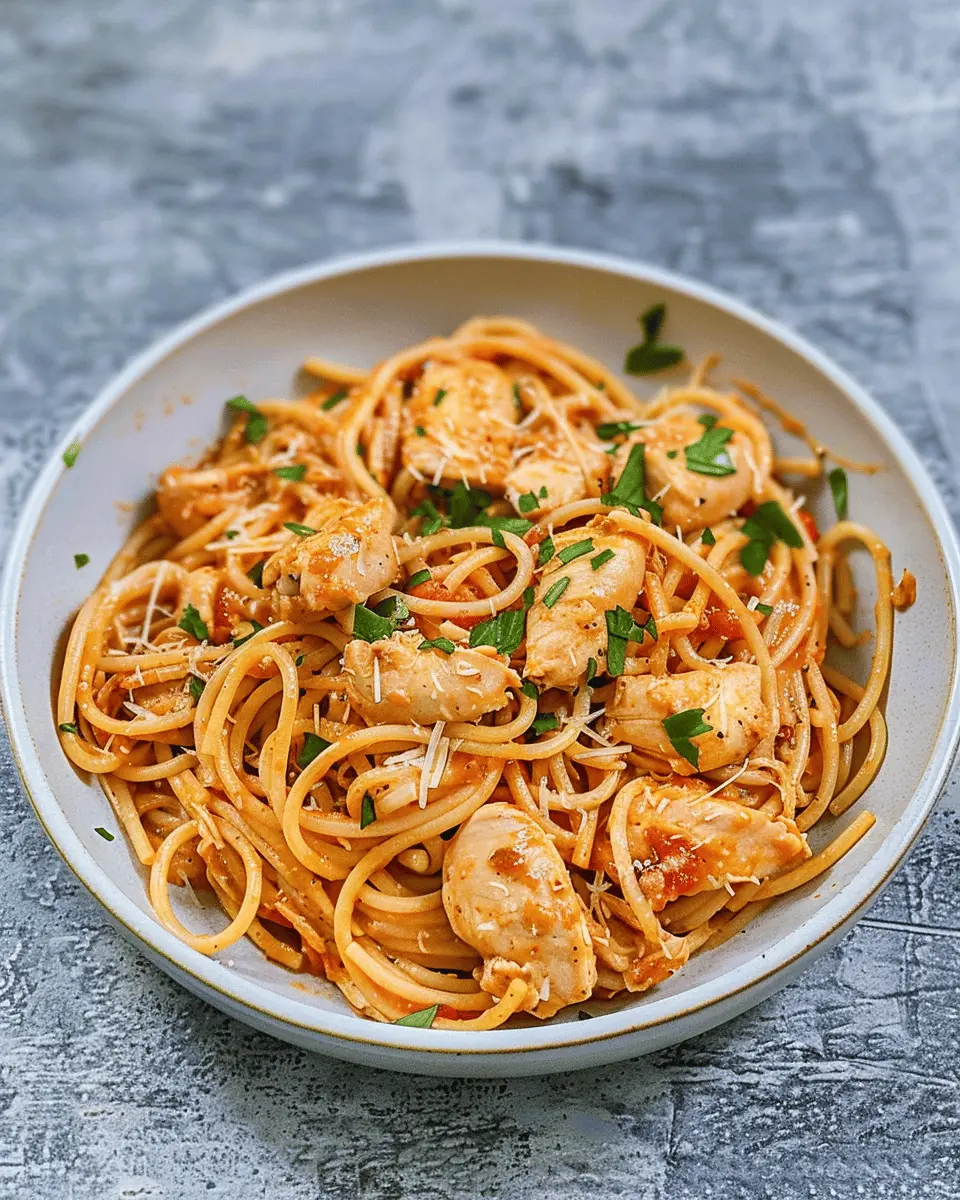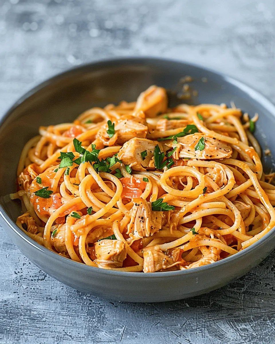 If you’re craving a little spice, try this Southwest twist! Just toss in a can of diced green chilies and replace regular tomatoes with RoTel for an added kick. You can even add black beans and corn for a complete meal. The starch from the pasta blends beautifully with the zesty flavors, elevating your Dump and Start Instant Pot Chicken Spaghetti to new heights.