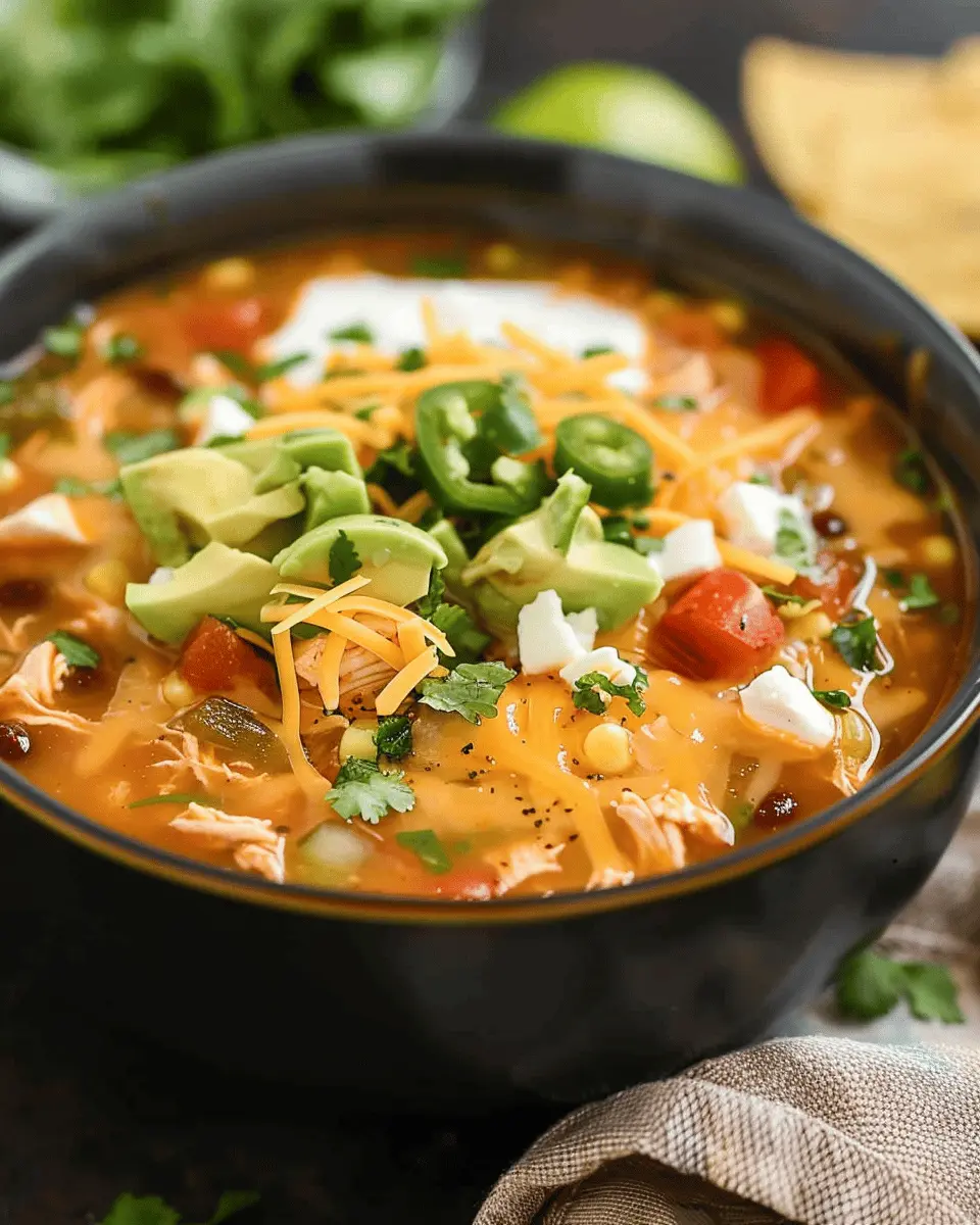 In summary, this easy crockpot chicken taco soup is a game-changer. With minimal prep and the convenience of a slow cooker, you can whip up a delicious meal that’s perfect for busy days. The combination of tender chicken, zesty spices, and colorful toppings makes this soup both satisfying and fun to eat.