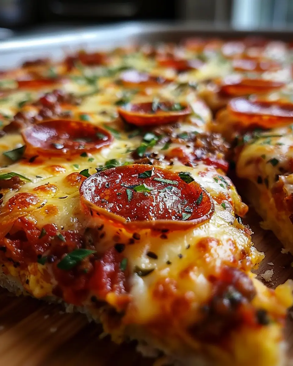 Make your serving extra fun! Serve the casserole in small, individual ramekins for a charming presentation at dinner parties. You can also set up a “pizza bar” with various toppings like olives, bell peppers, or turkey bacon on the side, allowing everyone to customize their slices. And why not pair it with a refreshing sparkling water?