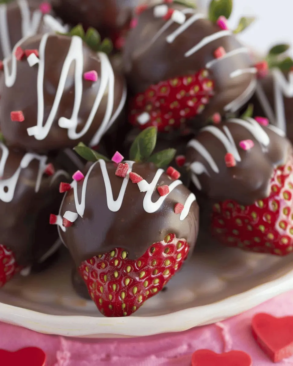 Indulge in the sweet delight of chocolate dipped strawberries, perfect for a Valentine’s Day treat!