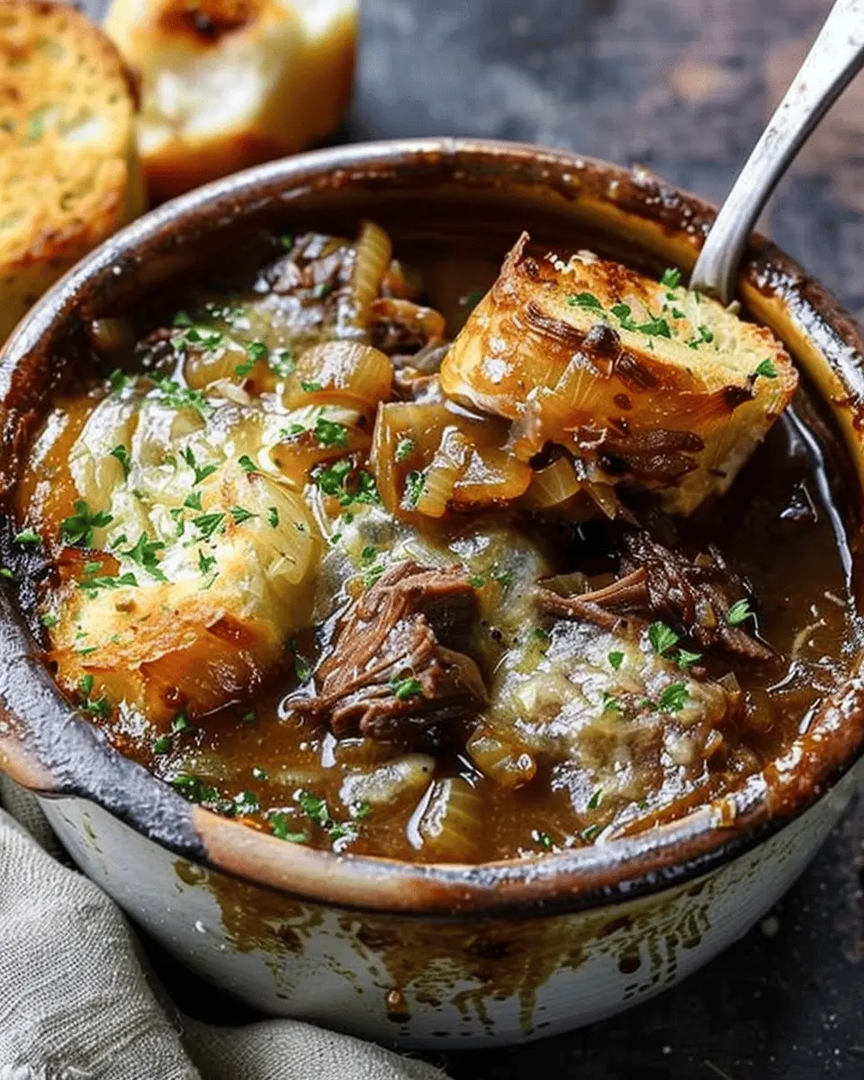 In conclusion, French Onion Beef Stew is more than just a meal; it’s an experience that warms the soul. The blend of sweet, caramelized onions, tender beef, and aromatic herbs creates a medley of flavors that’s hard to resist. Whether you’re entertaining friends or enjoying a cozy night in, this dish is the perfect centerpiece.