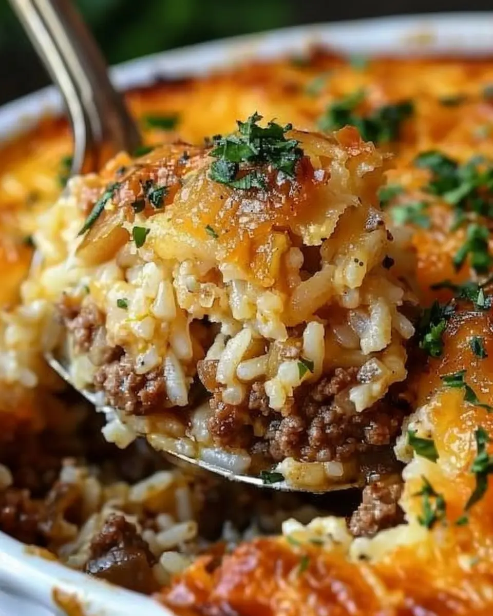 So, whether you’re winding down after a day at the office or hosting a small gathering, this French Onion Ground Beef and Rice Casserole is sure to impress and satisfy. Make it part of your regular dinner plans—you won’t regret it!