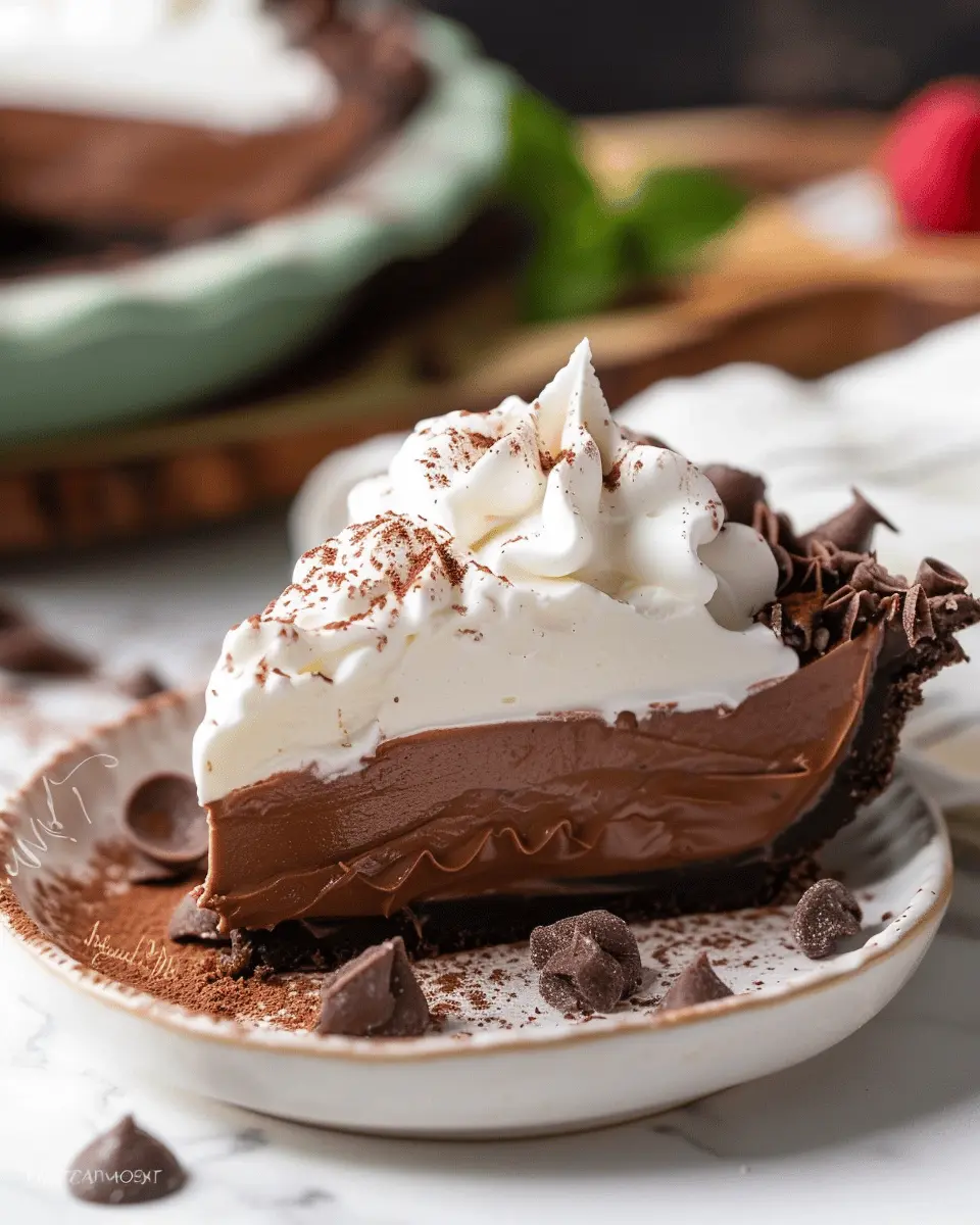 French Silk Pie is a delightfully rich and creamy dessert that boasts a smooth chocolate filling, topped with fluffy whipped cream. This pie combines the decadence of chocolate mousse with the convenience of a pie crust, creating the perfect indulgence for any occasion. Originating from America, it’s loved for its velvety texture and deep chocolate flavor, making it a favorite dessert of many.
