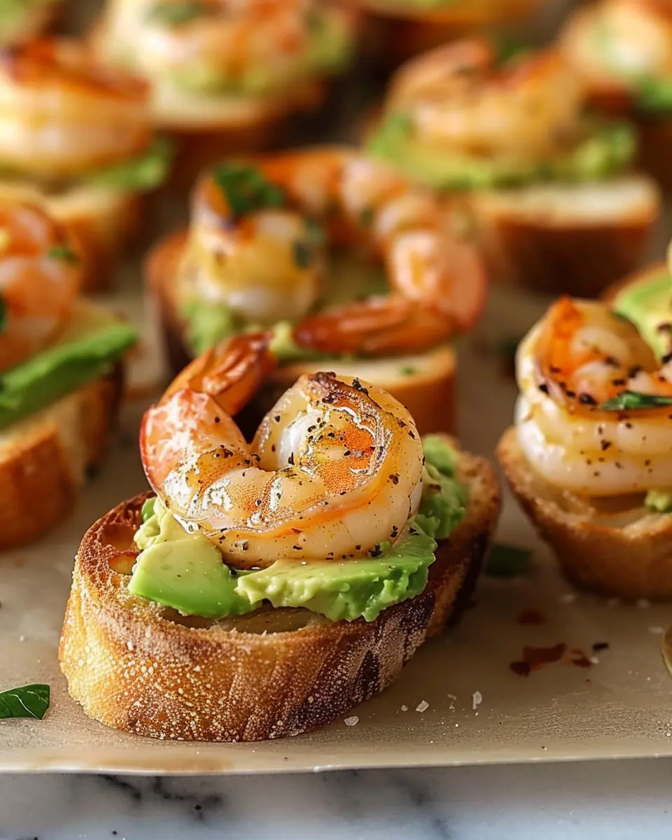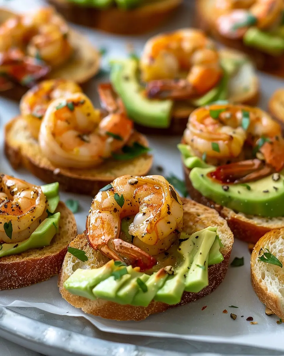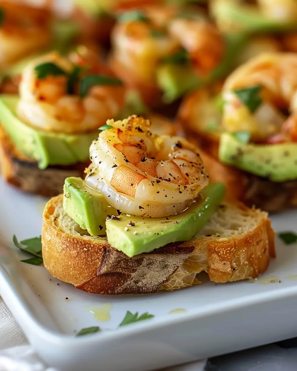 PrintGarlic Shrimp Crostini: A Flavorful Bite-Sized Delight with Avocado