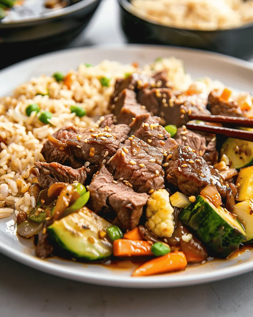 Delight in the flavors of Hibachi Steak with an easy recipe for fried rice and vegetables.