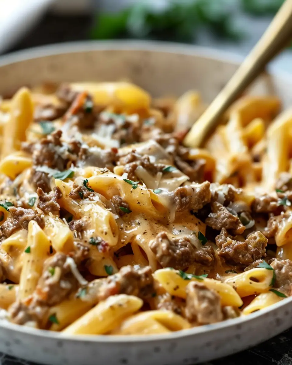 PrintHigh Protein Creamy Beef Pasta: Easy Recipe for Quick Dinners