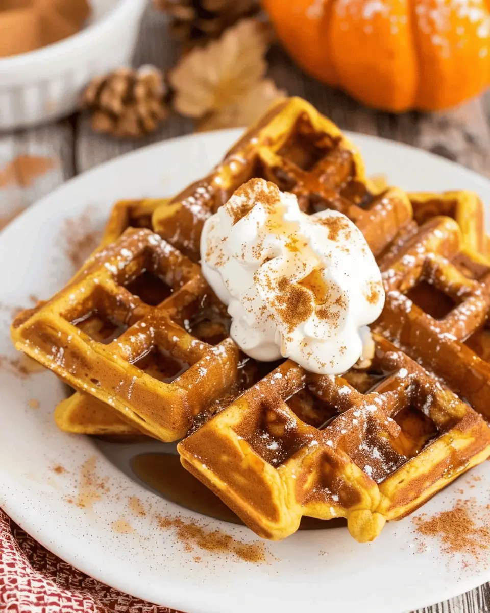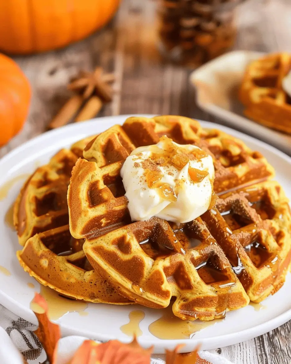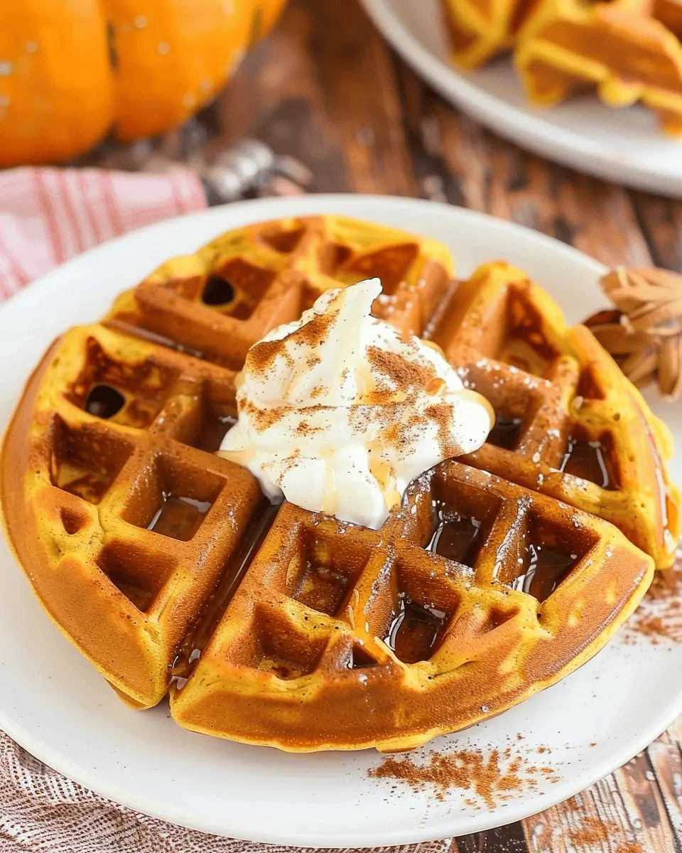 Enjoy these delicious and easy homemade pumpkin waffles, perfect for breakfast or brunch!