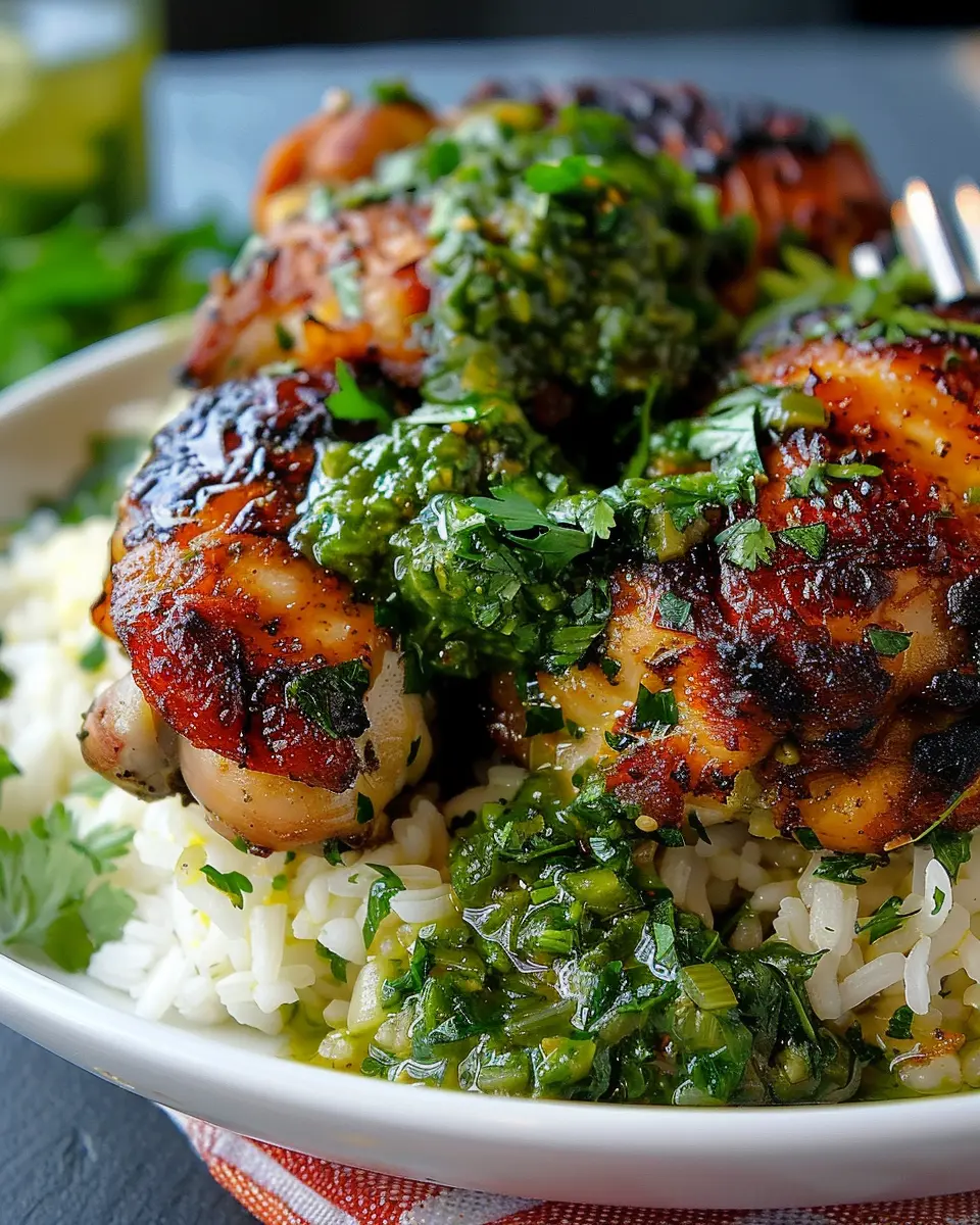 PrintJuicy Peruvian Chicken and Rice with 5-Star Green Sauce Delight