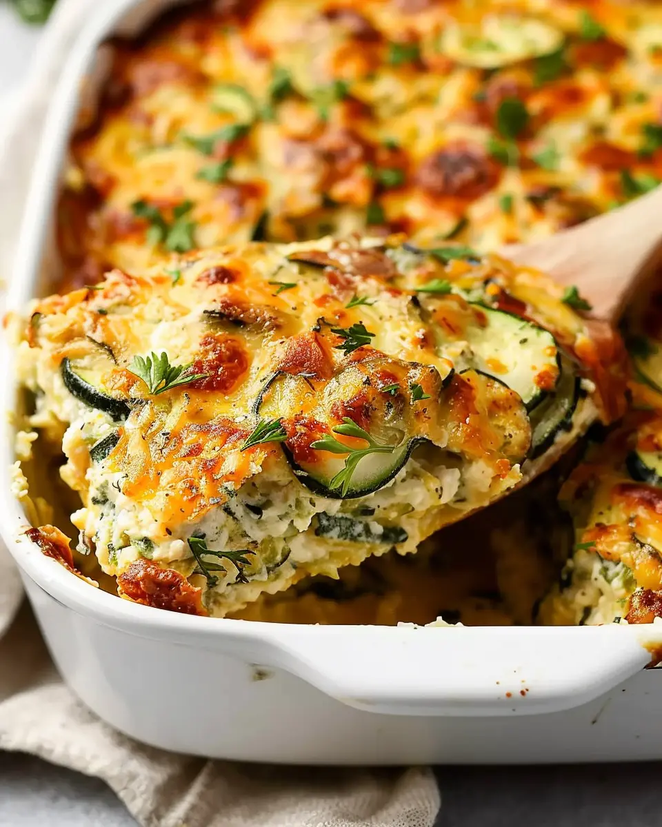 Definitely! To lighten up the casserole, consider using low-fat cheeses or Greek yogurt instead of sour cream. You can also increase the vegetable content by adding more zucchini or incorporating spinach or bell peppers. These simple swaps can significantly reduce the calorie count while maintaining delicious flavors.