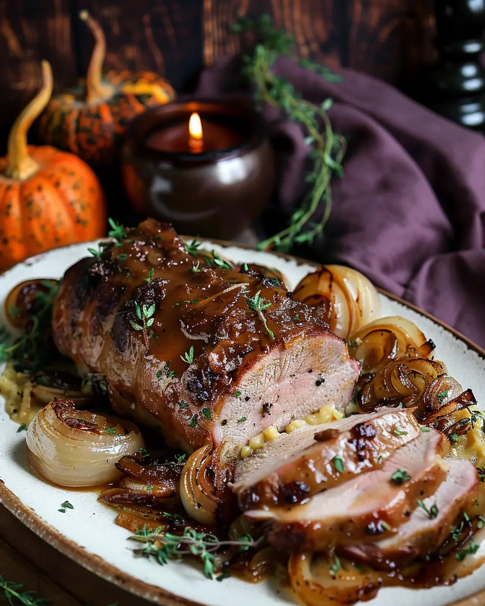 PrintMaple Mustard Pork Tenderloin with Caramelized Onions: Juicy Delight
