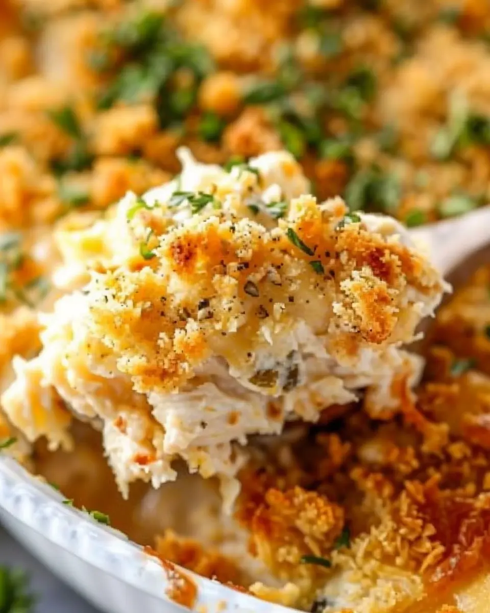 - Cream of Chicken Soup – Adds creaminess and flavor, making the casserole comforting and hearty.