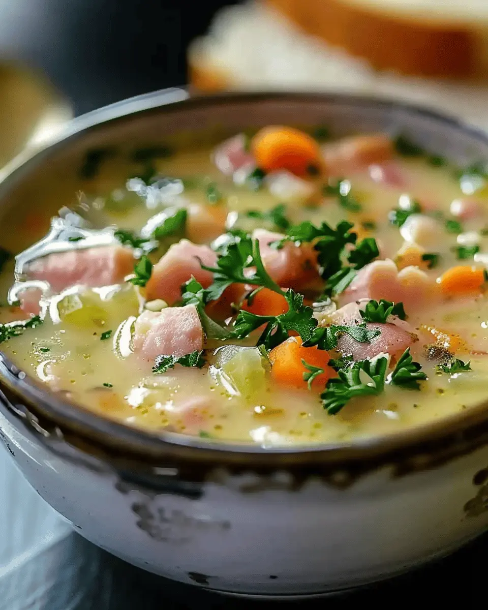 PrintMiraculous Ham Soup Recipe: Cozy Chicken Ham Delight with Turkey Bacon
