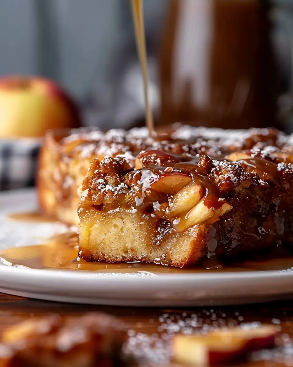Imagine biting into a warm slice of cake drizzled with rich caramel sauce. This variation adds a luscious touch to the classic apple fritter cake.