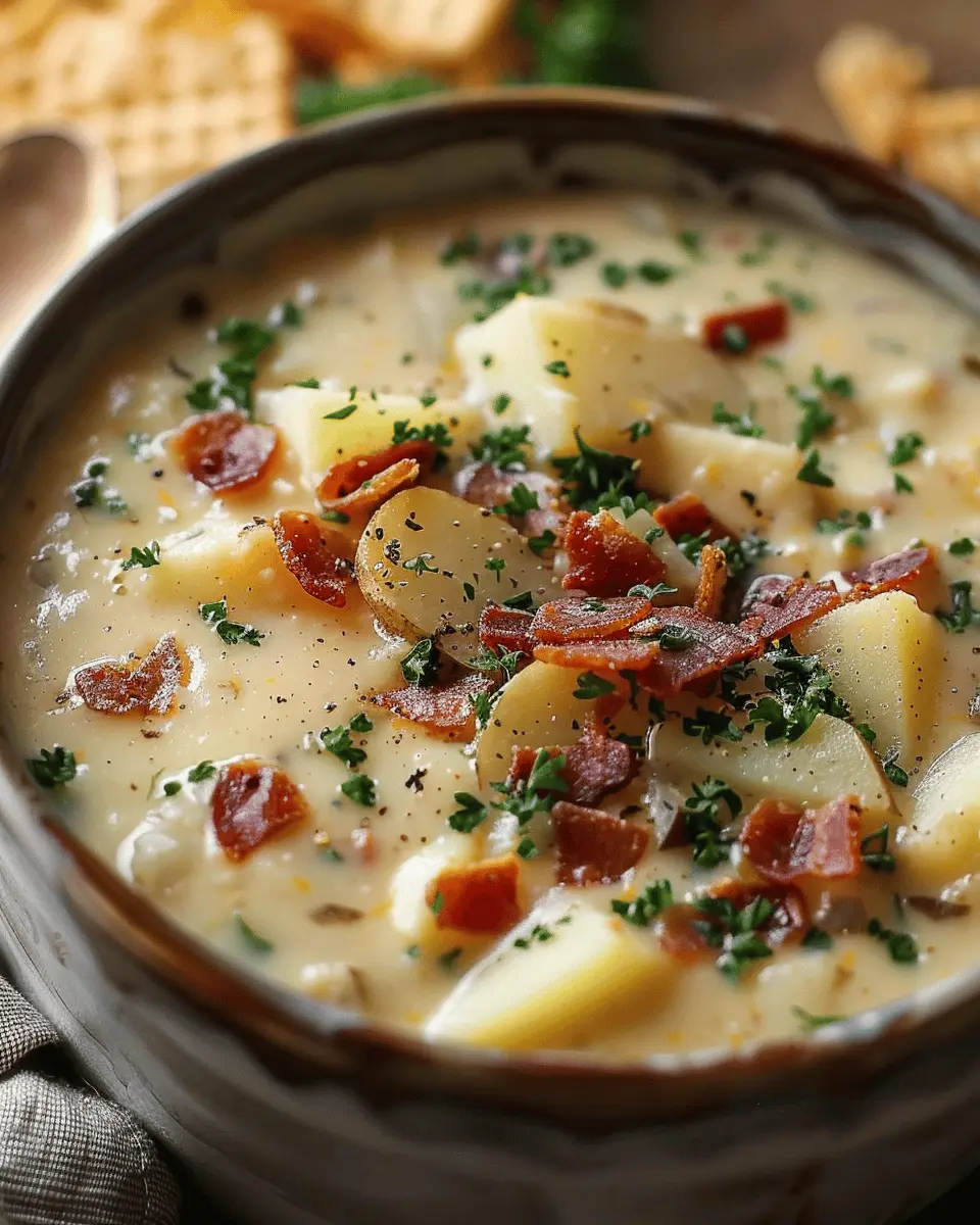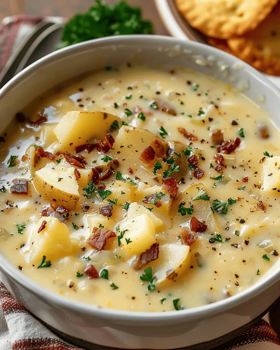 Potatoes are not just a filler; they’re nutritious, packed with potassium and vitamin C, making this soup not only indulgent but also a little bit healthy. According to nutrition experts, incorporating potatoes into your diet can benefit heart health and digestion when prepared properly.