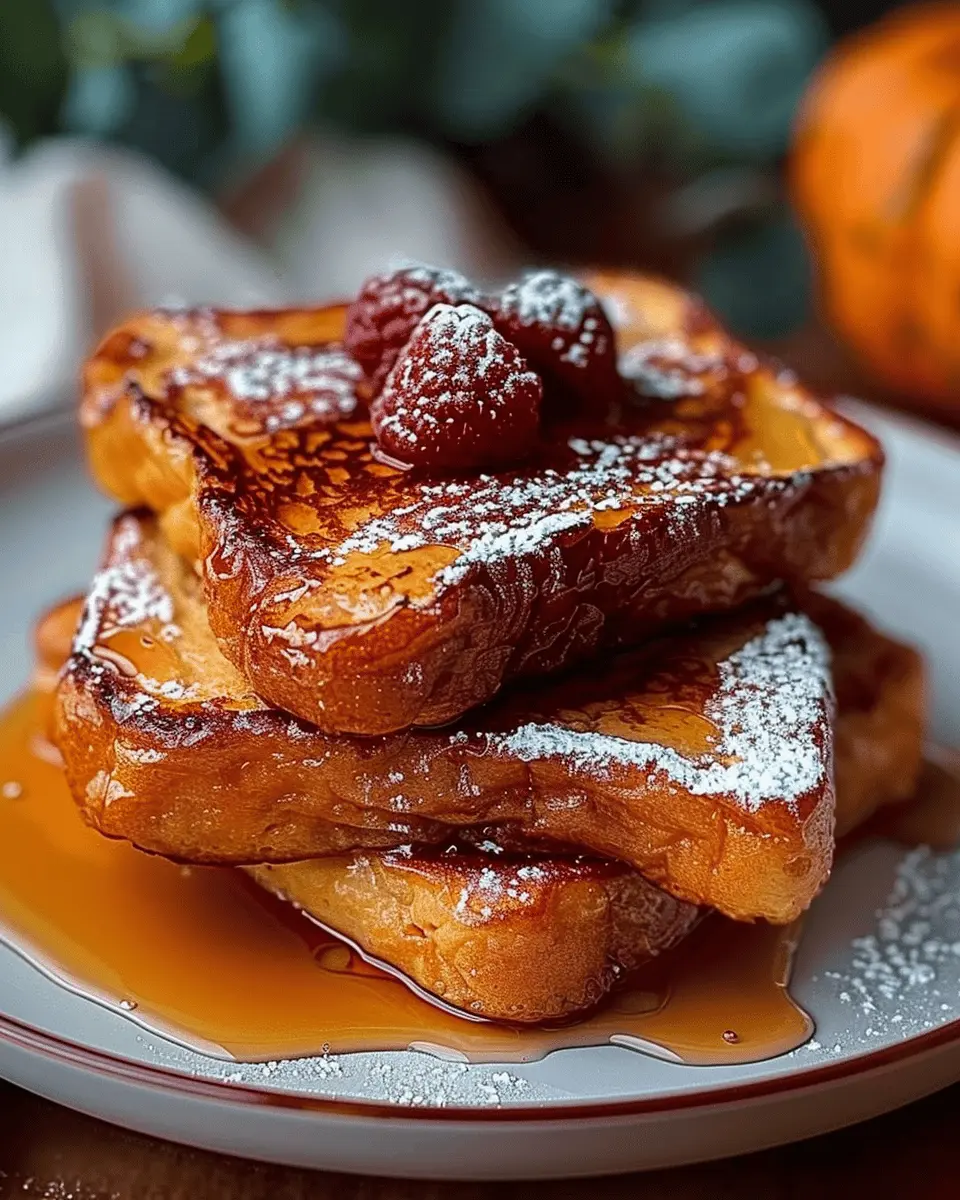To elevate your Pumpkin French Toast Breakfast, consider adding some delightful sides. Turkey bacon is a lighter alternative that offers a satisfying crunch. You might also enjoy some crispy chicken ham for a savory contrast. For a healthier touch, serve a side of Greek yogurt topped with granola and a drizzle of honey. Fresh fruit, such as berries or sliced bananas, lends a refreshing balance to the rich flavors of pumpkin.