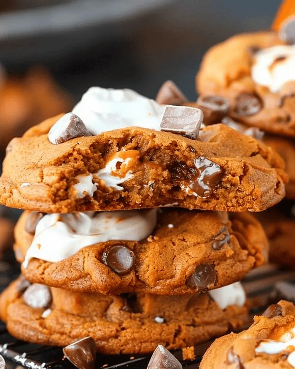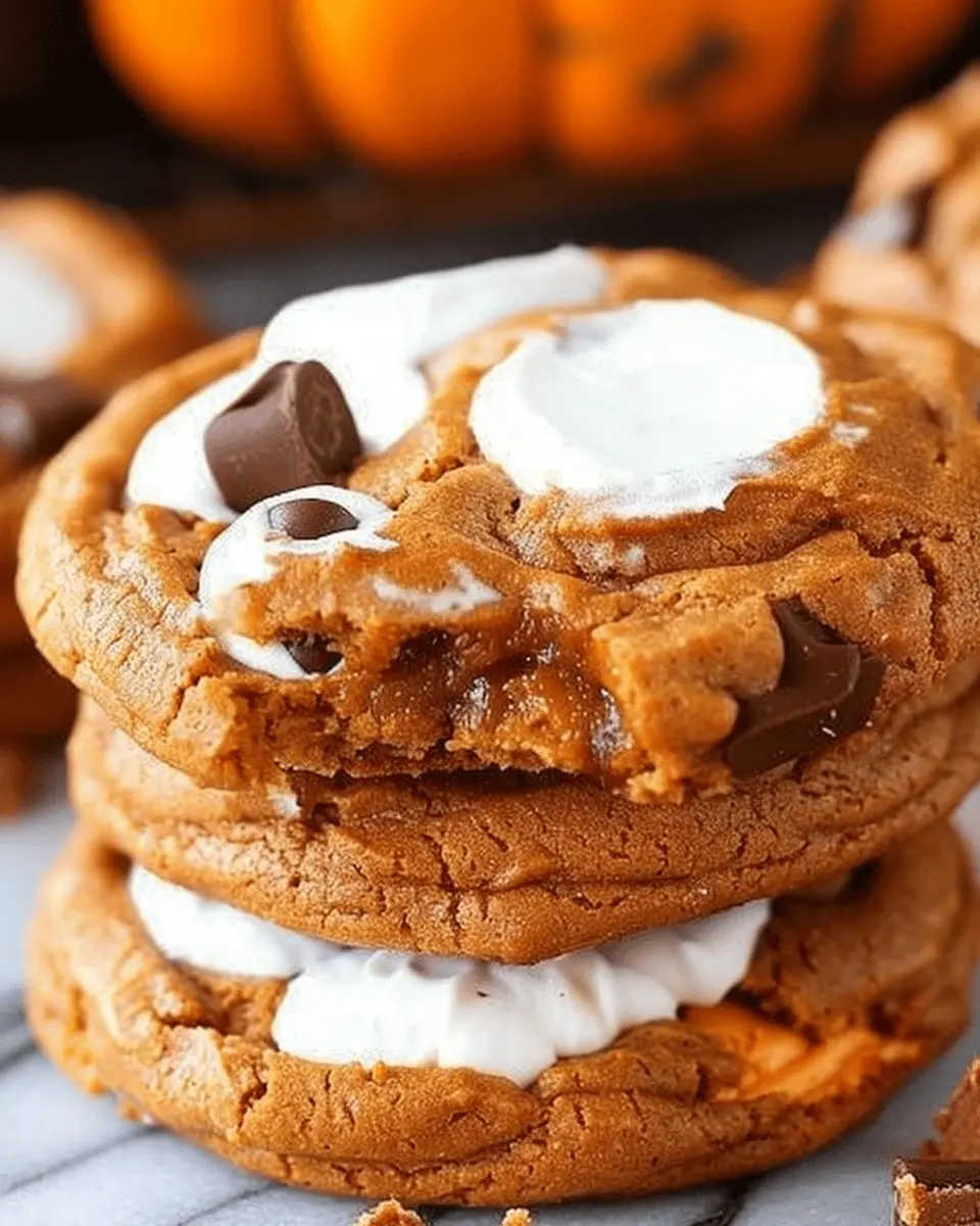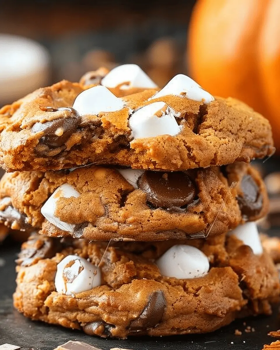 Deliciously soft Pumpkin S’mores Cookies that combine the flavors of pumpkin, chocolate, and marshmallows, perfect for fall.