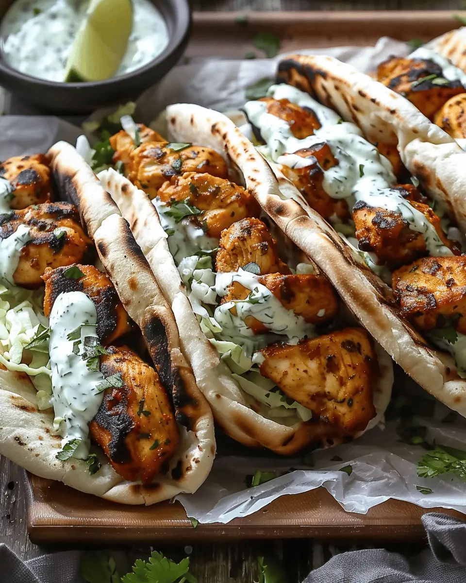 Each serving of these tasty chicken pitas contains approximately 350 calories. This makes them a balanced option for lunch or dinner, especially when you need something both satisfying and health-conscious.