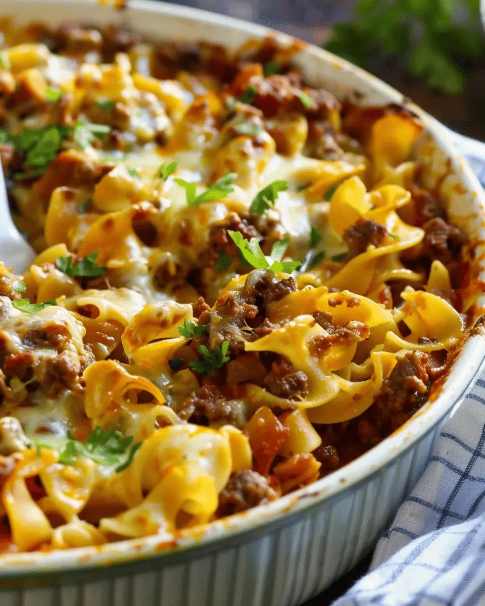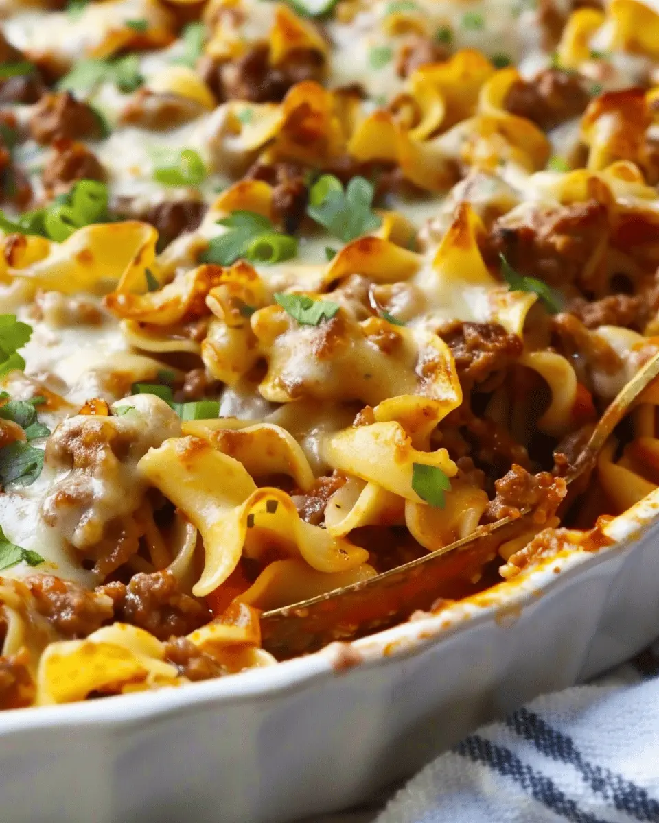 PrintSour Cream Beef Noodle Casserole: Comforting and Easy Recipe