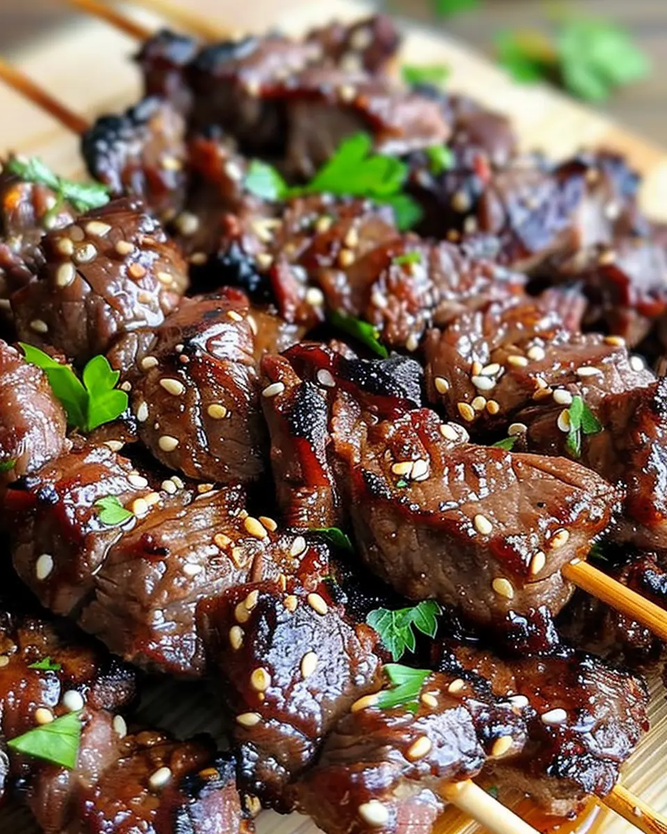 Enjoy a savory and sweet combination with these Teriyaki Sesame Beef Skewers, perfect for an exciting dinner.