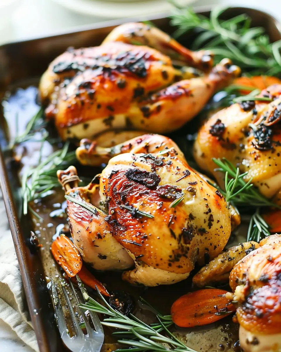 - Brussels Sprouts: Halve them and toss them in a little olive oil and seasoning. They caramelize beautifully, complementing the hens perfectly.