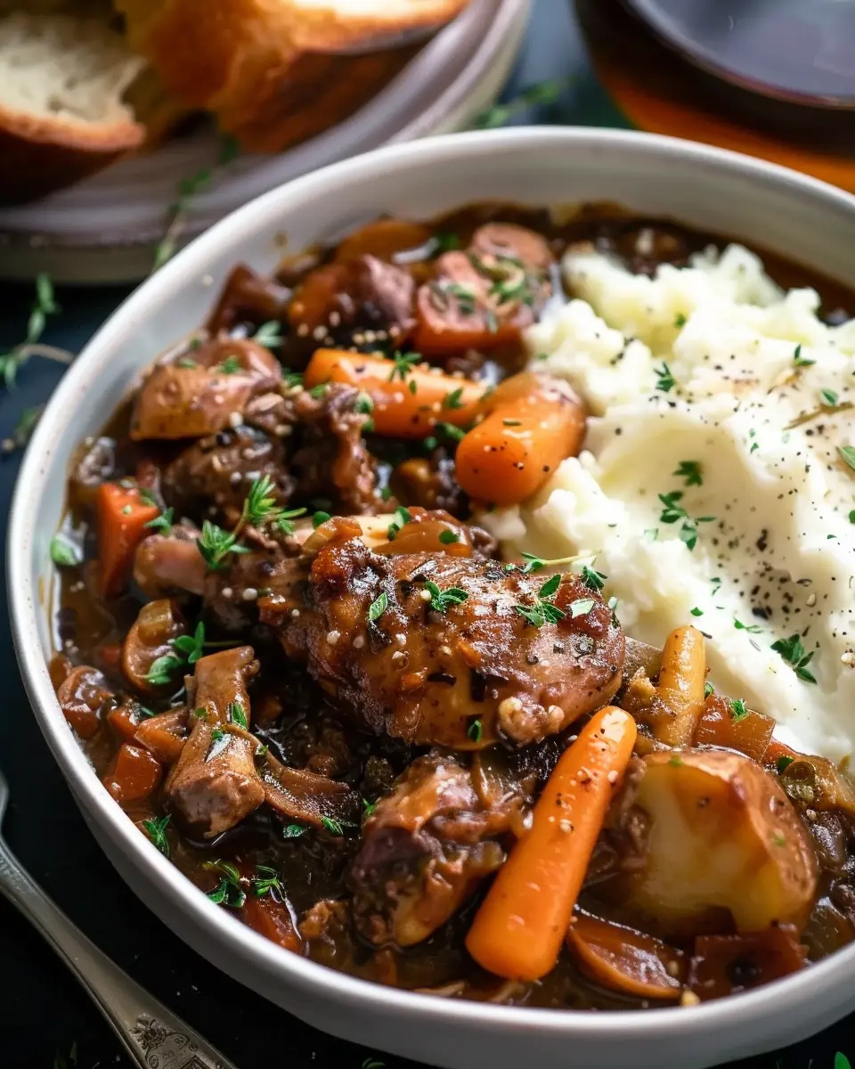 Now that your stew is ready, it’s time to plate up! For the perfect pairing, consider serving your vegan coq au vin with: